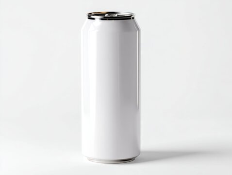 Sleek white aluminum can on clean background studio shot capturing modern minimalist design for beverage branding and packaging mockups with subtle reflections