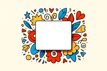 Whimsical doodle border with blank square frame and floral elements