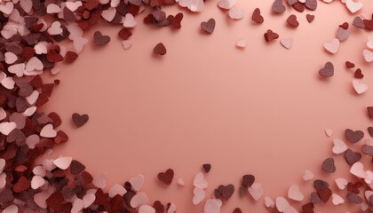 Romantic pink background frame adorned with numerous vibrant red hearts for love and celebration