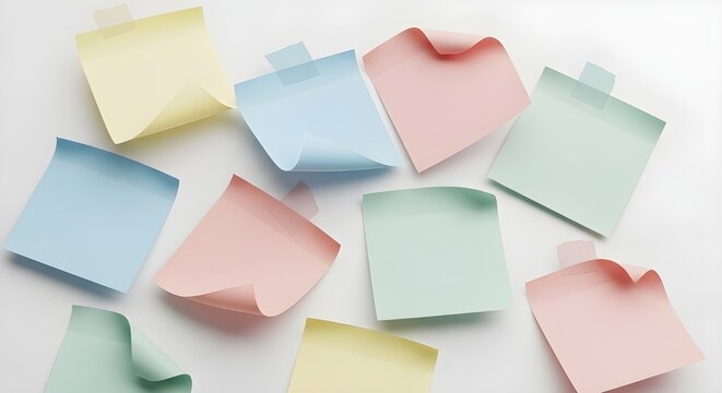 colorful blank sticky notes scattered on white surface