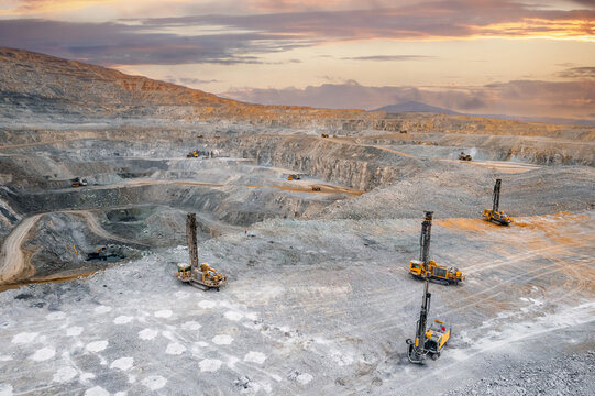 Blasthole drill in an open pit copper mine operation in Chile