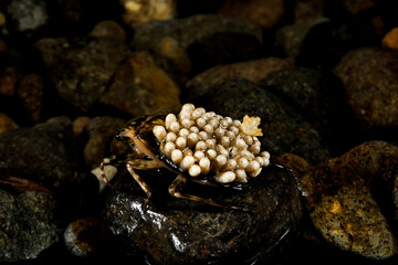 A giant water-bug, Belostoma species, carries eggs on it's back.; Tabasco State, Mexico.