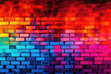 Brick Wall In Sunset Blaze Neon Colors