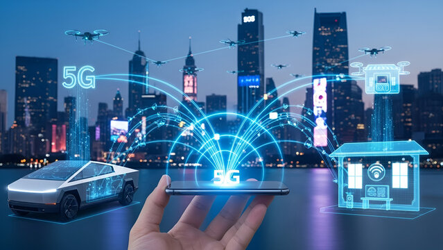 Experience the future now with blazing fast 5G connectivity showcasing a modern smart city with seamless connections on a handheld device