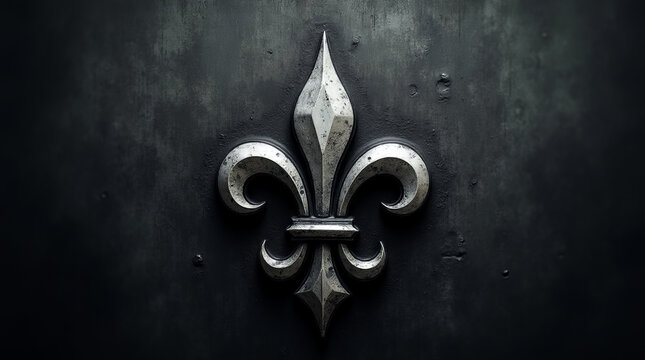 Silver vintage fleur-de-lis on a black stone grunge background, heraldic lily
