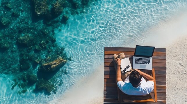 Coastal Workspace: Businessman Combines Work and Leisure