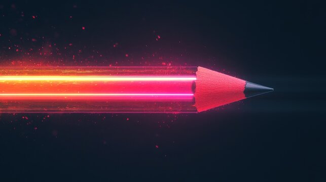 Neon-style pencil transforming into a blinking text cursor, futuristic edit concept