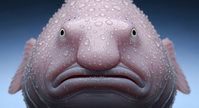 Captivating closeup of a blobfish featuring droplets of water creating an ethereal visual