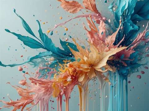 flower on blue background,oil painting splashes, like leaves and flowers