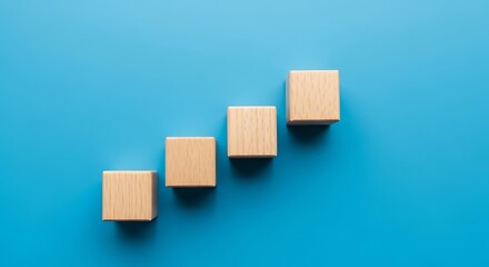 Pyramid of blank wooden blocks on table represents growth potential building blocks of success foundation stability. Development progress construction structure level hierarchy achievement goal