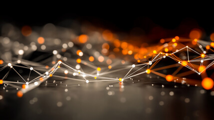 A glowing blue and orange neural data network with interconnected pathways, symbolizing AI-powered evolution, blockchain integration, and deep learning visualization.
