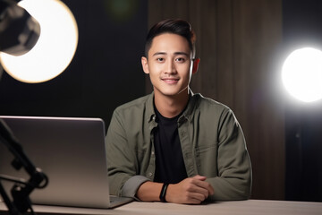 Modern cookery vlogger sharing healthy recipes in home kitchen