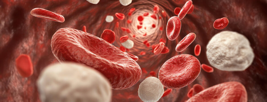 Red blood cells flowing through a vein with .
