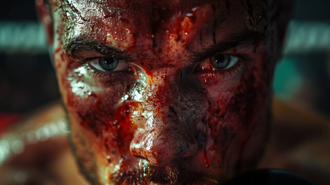 Close-up of a bloodied male fighter's face