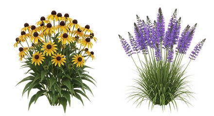 A xeriscape garden with a wide variety of hardy, drought tolerant plants, including Echinacea, Coneflowers, Gaillardia, Geranium rozanne, Poker plants and more. High quality