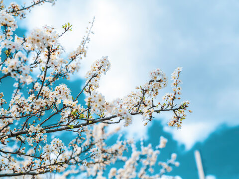 Springtime blooming white blossom on tree branches