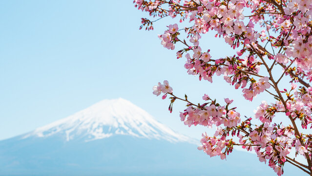 Mount Fuji with cherry blossom at Lake Kawaguchiko in japan. Springtime