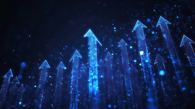 Dynamic display of blue arrows pointing upwards emphasizing progress