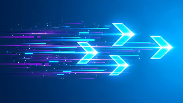 A series of blue arrows pointing upwards in a staggered formation with a glowing effect