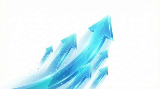 A vibrant visual representation of growth and success featuring multiple blue arrows pointing upwards against a bright gradient backdrop high quality