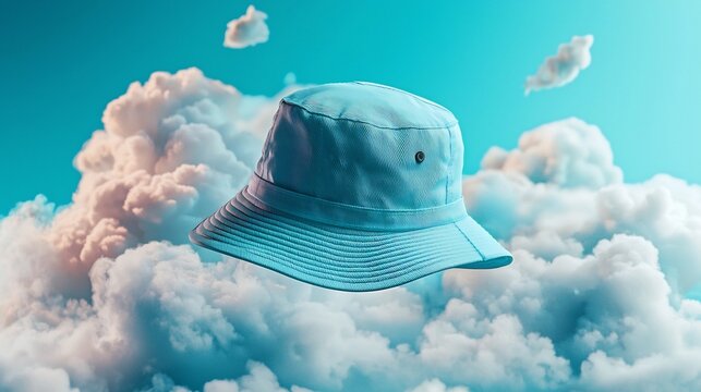 Blue bucket hat isolated on transparent a white background