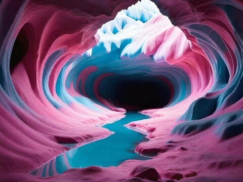 pink and blue cave in mountain