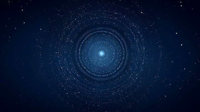 Abstract Blue Circular Light Trails With Dark Background and Digital Texture Effect