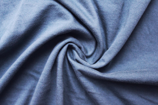 Long exposure photograph of neon blue colour in an abstract swirl, parallel lines pattern against a black background. Light painting photography