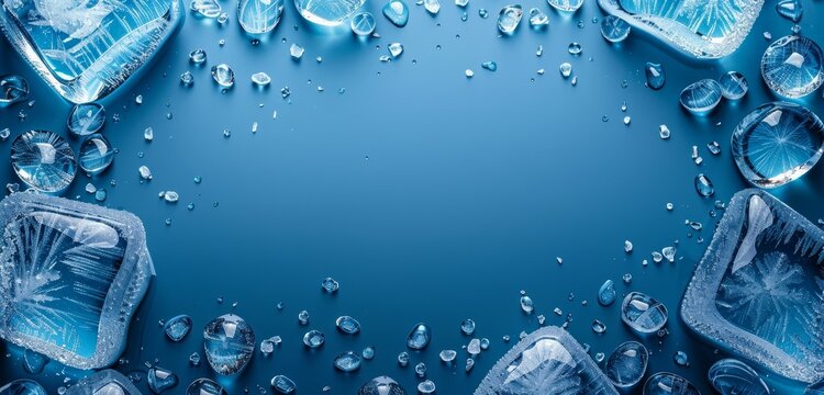 Blue Ice cubes border ice background accessories.