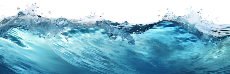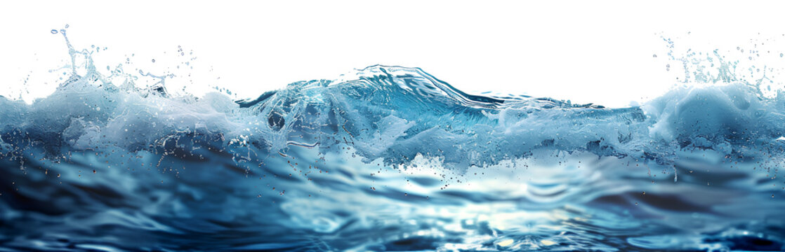 Water, blue water surface with wave isolated on a white background. Sea water surface cut out