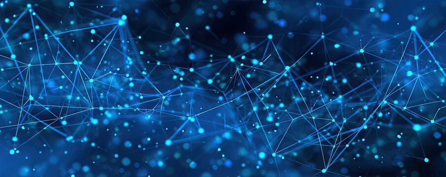 Abstract blue digital circuit lines with glowing dots on dark background for technology theme, data visualization, and modern design concepts