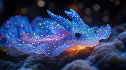 Blue Dragon (sea slug) with rainbow sparkling dots.