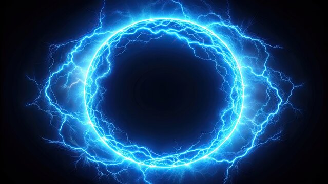Round frame of shining blue electric lightning isolated on background , electricity, lightning, energy, power, round, frame, shiny