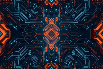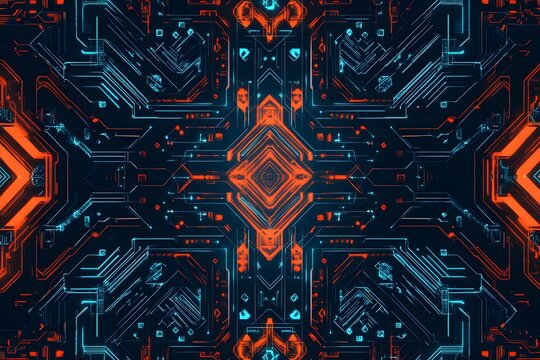 Abstract glowing tech pattern, vibrant colors, dark background, digital art, ideal for tech visuals