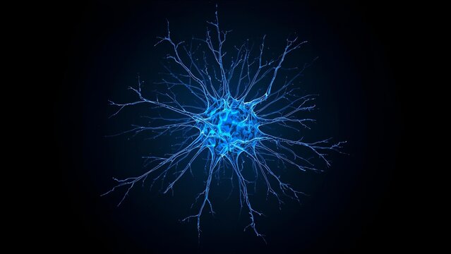 An eye-catching abstract picture with a deep black background that looks like a neurone structure exploding in blue
