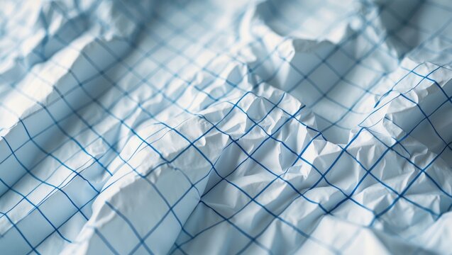 Crumpled white paper with blue graph lines.