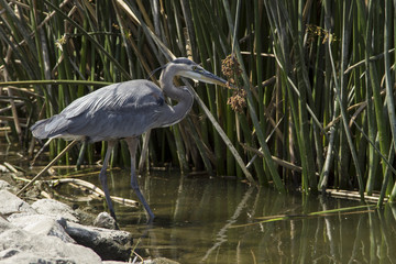 lake, sunset, reflection,, Great blue heron feeding its chicks in a nest with open mouths and green foliage background outdoors