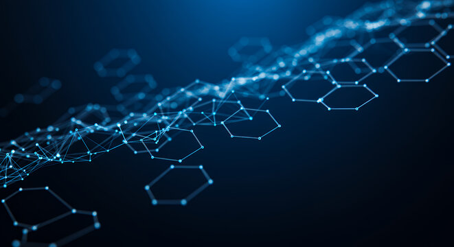 Blue Hexagon Network: Futuristic Tech, Data Connection, Science, Medical, Abstract Structure