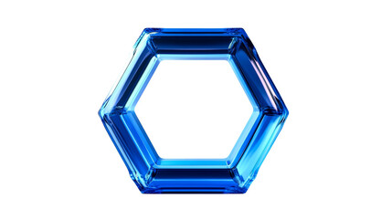 Shiny blue hexagon shape. Geometric figure with light effect. cut out transparent