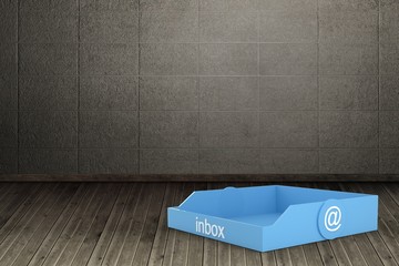 Digital mail notification concept, blue envelope with purple at sign graphic in center