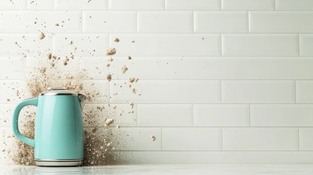 Ethereal blue kettle emitting mystical steam in a captivating and enchanting display