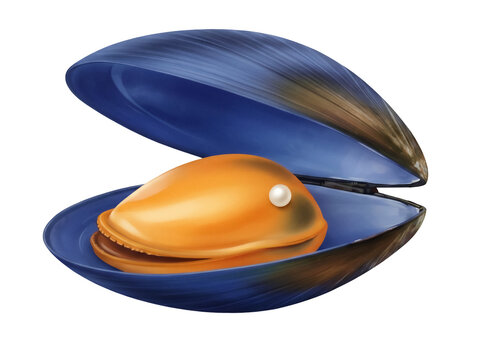 Stunning Close-Up of a Blue Mussel Shell on a white background.