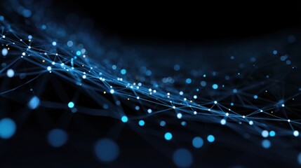 Abstract blue network with glowing nodes and flowing lines in a dark environment concept art