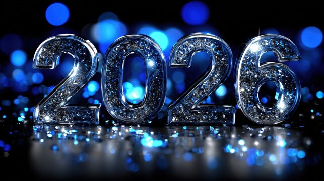 2026 new year celebration glittery blue numbers