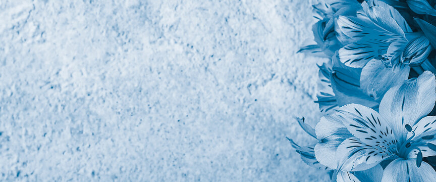 Elegant blue orchids bloom against a solid royal-blue background, highlighting the flower’s delicate structure, vivid color, and natural beauty in a minimalistic floral composition.