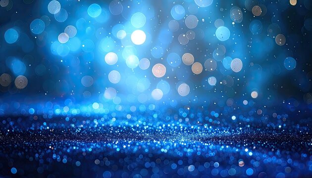 Glowing particles and bokeh lights on blue background