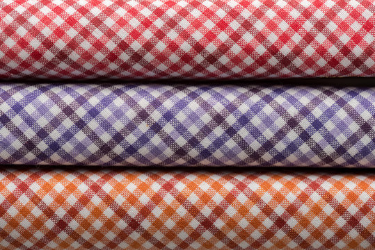 green, blue, red and yellow tartan checkered real fabric seamless pattern