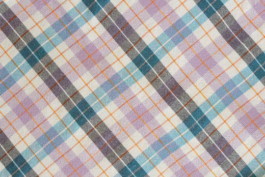 The texture of linen fabric in a large cage of blue and white. Scottish tailoring material