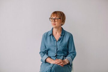 Folded plaid shirt with glasses on wooden surface creative concept