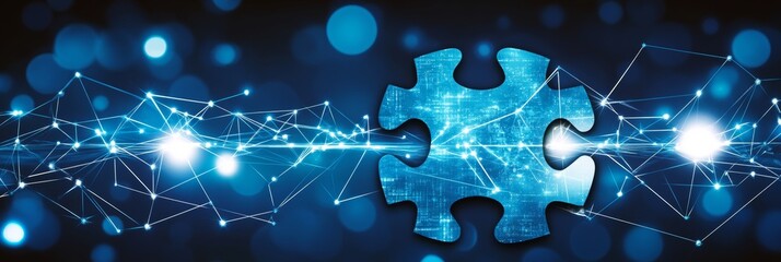 Blue Puzzle Piece Connecting Digital Networks, Concept for Technology and Innovation.